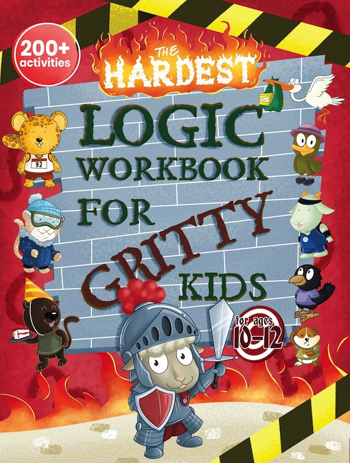 Whether you are looking for activities to develop or entertain, The Hardest Logic Workbook for Gritty Kids is unmatched. Comprehensive content is perfect for kids ages 10-12, yet challenging enough for older kids and adults too.